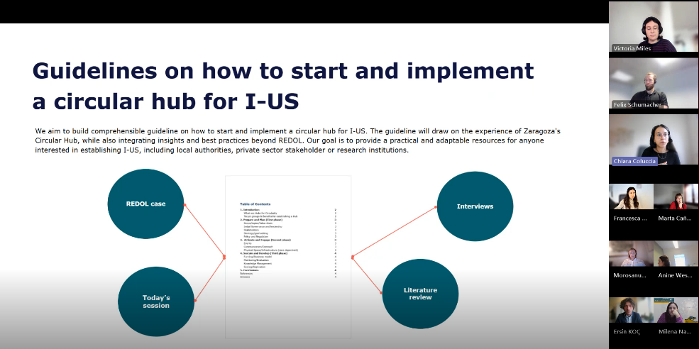 “We started the seminar by presenting the case of Zaragoza’s Circular Economy Hub, which emerged from REDOL, and several participants showed interest in learning more, as it is a successful example of the establishment of a hub. Following the presentations, we moved into three breakout rooms to discuss key elements that are needed when kickstarting a circular hub.